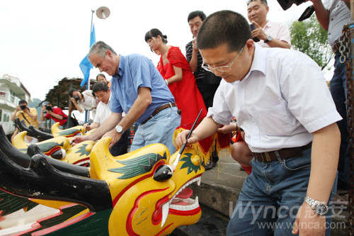瀏覽量:4909 6月9日下午,新安集團兩年一屆的新安龍舟賽在新安江上激情上演。本屆龍舟賽共有農化事業部、農藥廠、化工二廠、有機硅事業部、有機硅廠、硅酮密封膠廠、熱電廠、集團機關聯隊、采購中心、新安物流、新安包裝、新安邁圖、開化合成、開化元通、鎮江江南、泰興興安等16支代表隊參賽。經過激烈角逐,熱電廠代表隊獲得了一等獎;開化元通和新安物流代表隊獲得了二等獎;有機硅廠、開化合成、集團機關三支代表隊獲得了三等獎。圖為在龍舟賽前的開幕式上,集團領導為龍舟點睛。