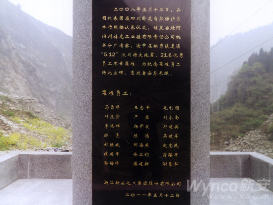 王偉董事長在調(diào)研期間還與阿壩州、汶川縣政府有關領導一道專程前往汶川縣映秀鎮(zhèn)“5.12”汶川大地震集團公司員工遇難地,為“紀念碑”落成舉行祭祀儀式,并向紀念碑敬獻花籃。